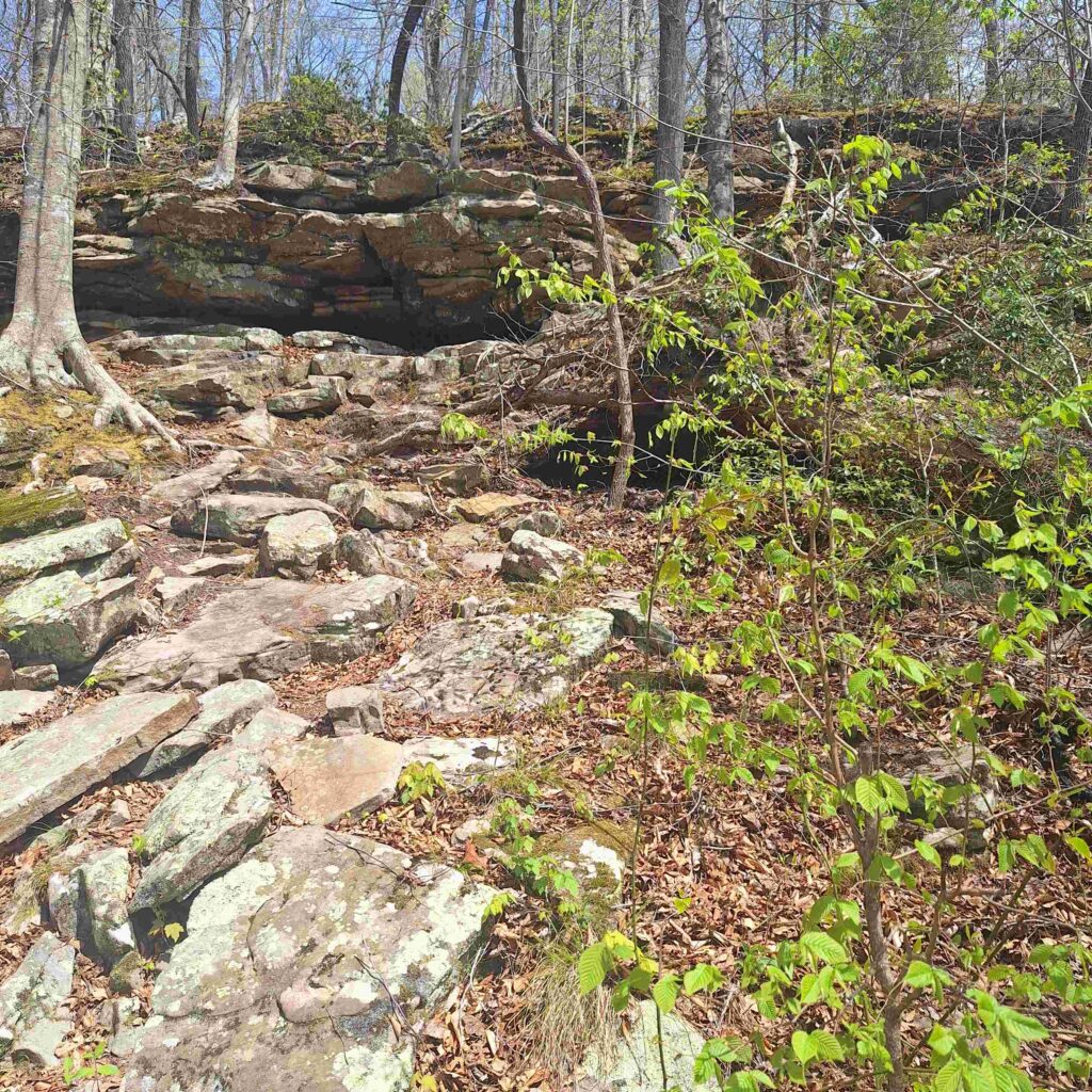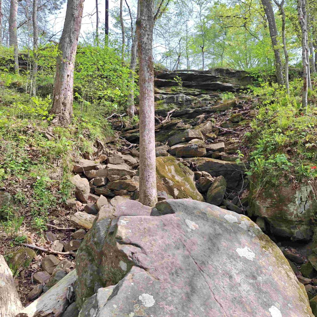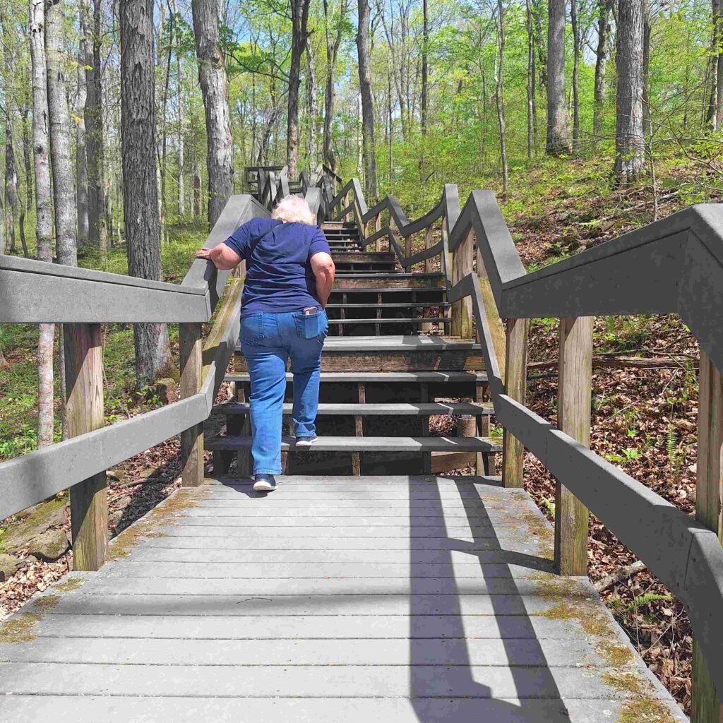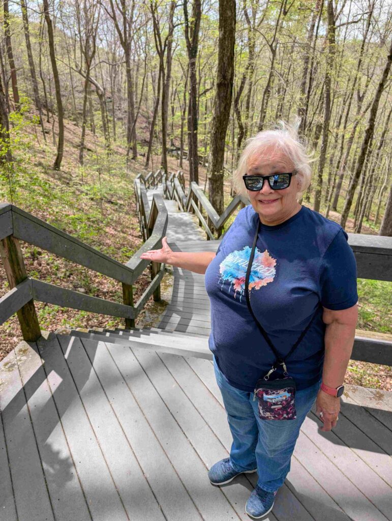 After Steve’s tour, Steve and Vicki took a little hike to Dixon’s Cave, an easy half mile hike with only 51 feet of elevation change that started at the Historic entrance of Mammoth Caves. This hike included a set of stairs that worked Vicki’s legs (and appeared to be taller than 51 feet.) But the hike took us through some interesting rock formations where we could see potential cave entrances.