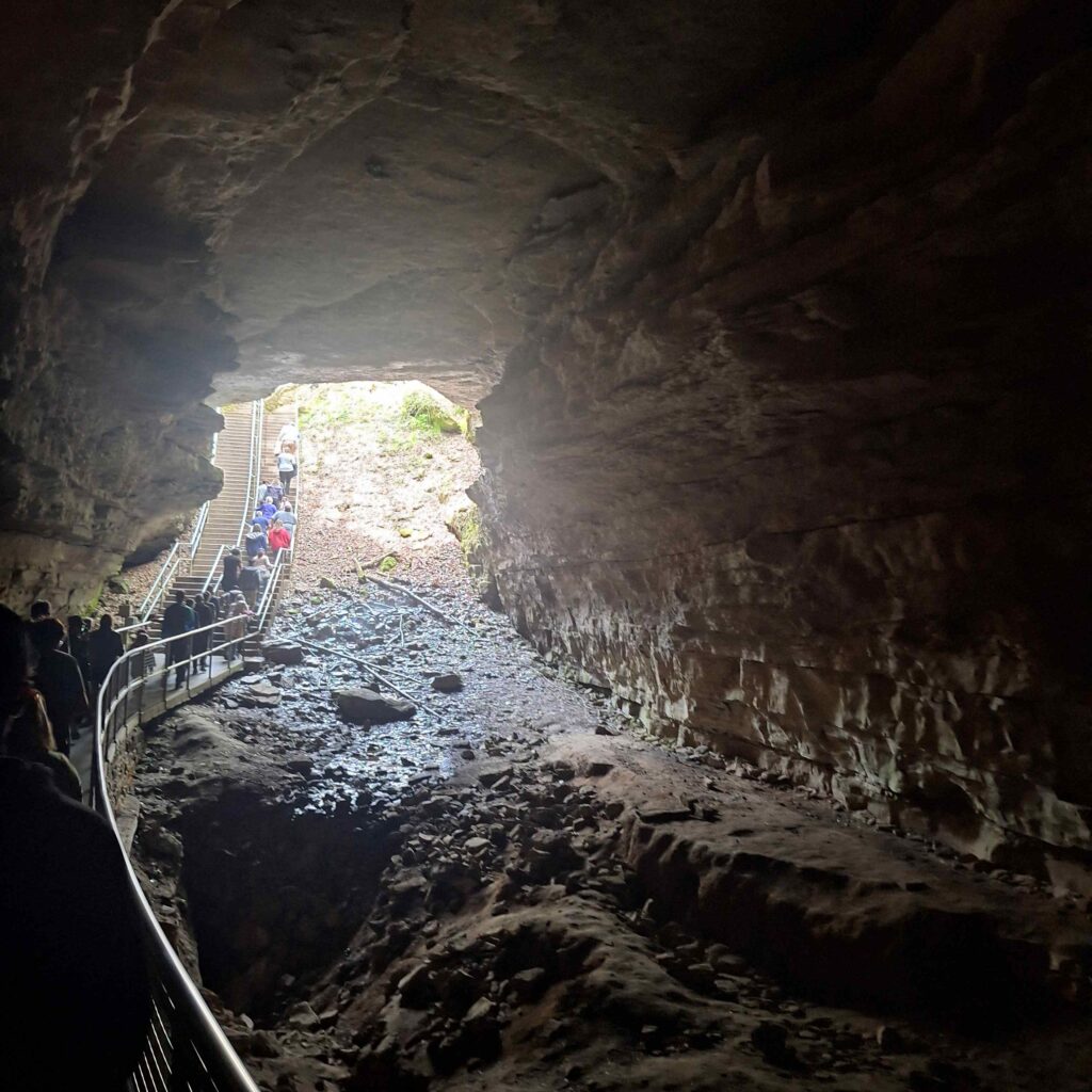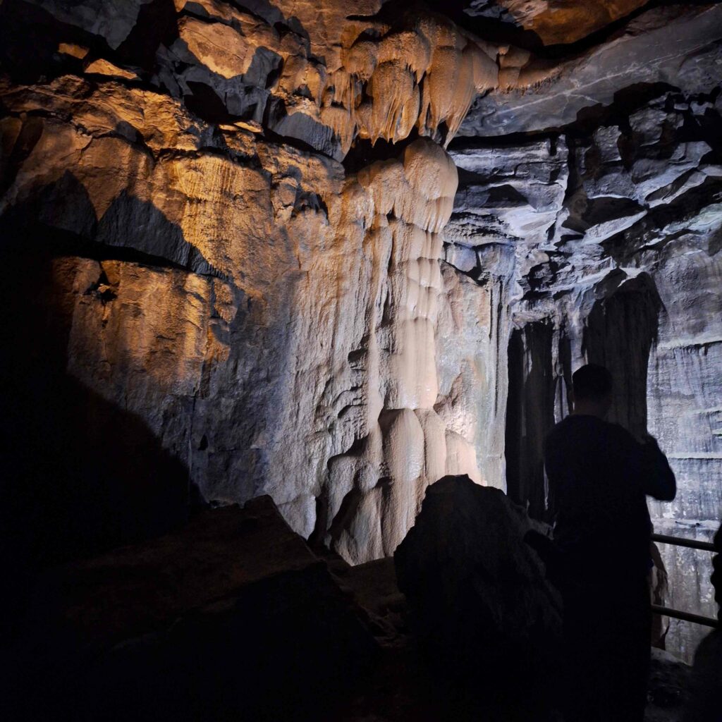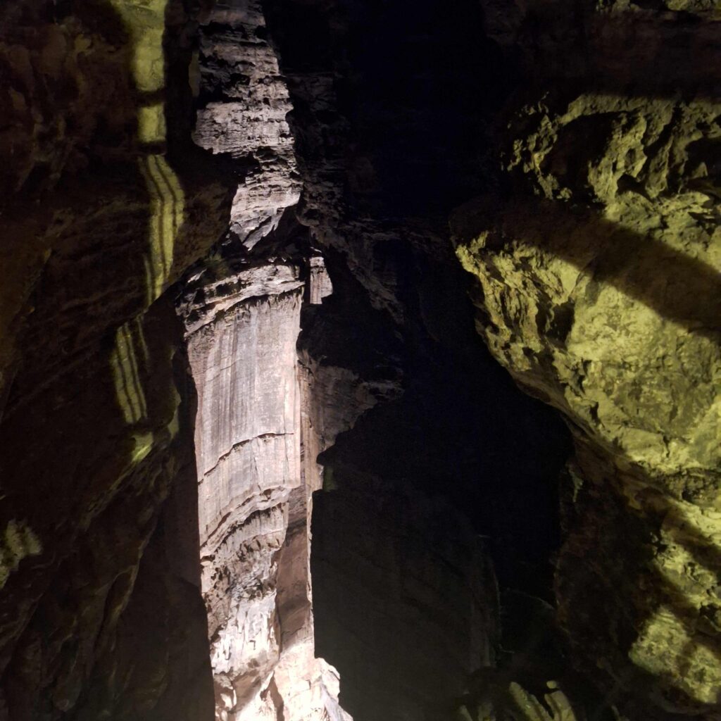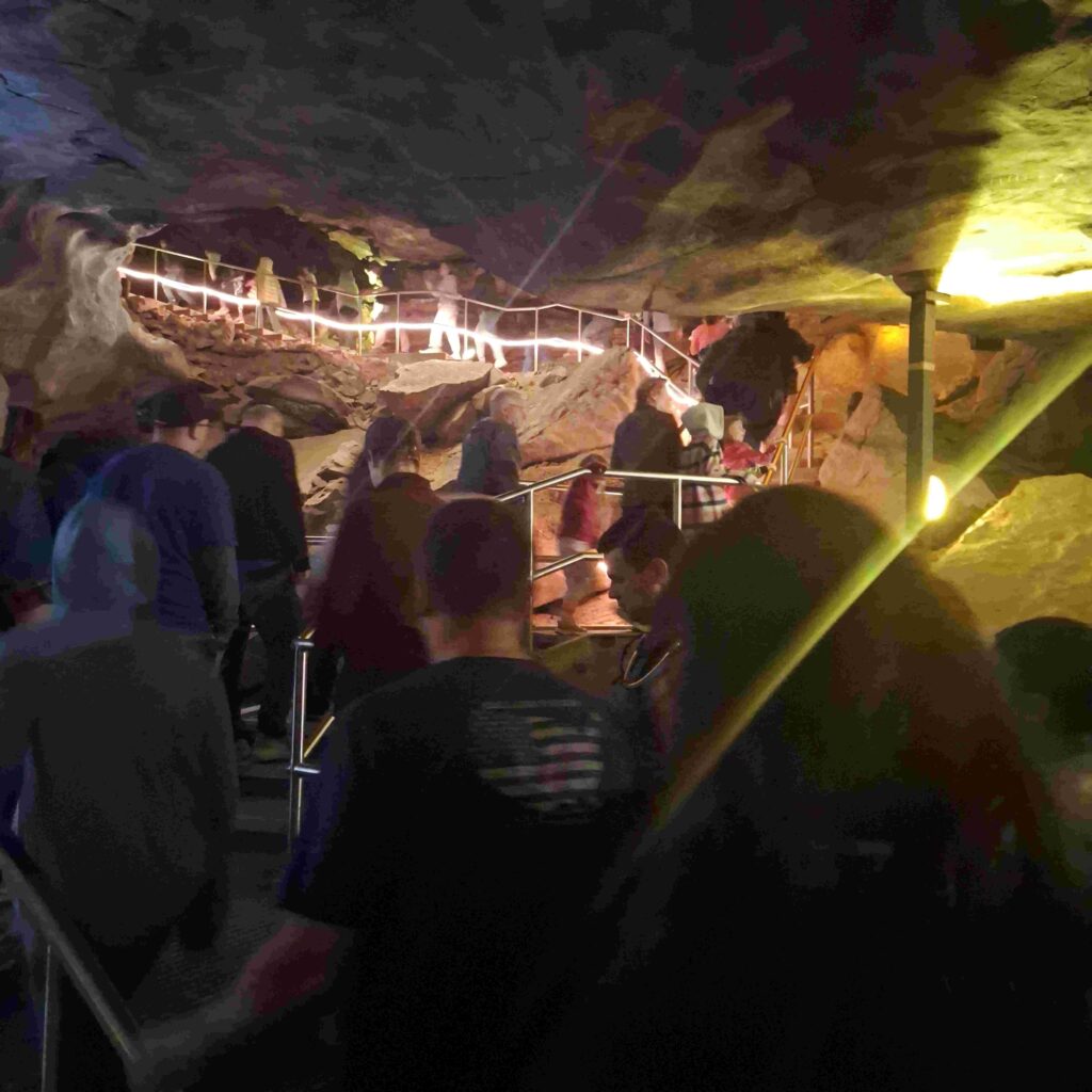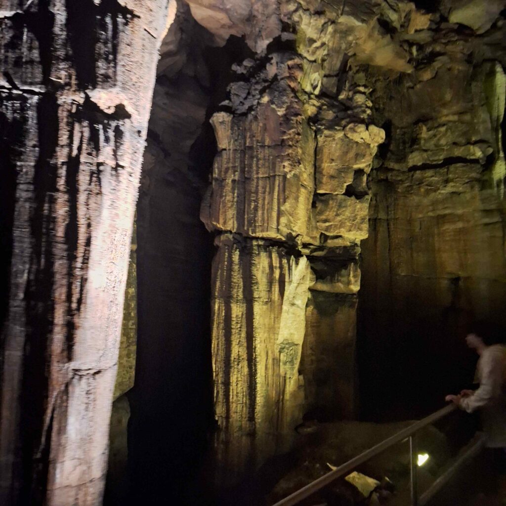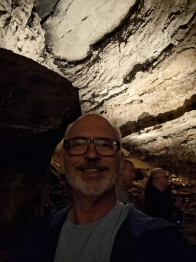So Steve toured the cave solo while Vicki explored the visitor center and store. The narrow part (Fat Man’s Misery) was only narrow to the knees, but there were points Steve had to side step to get through. And the history of this main cave was fascinating, starting with early mining in prehistoric times, mined for saltpeter during the war of 1812, and then the development of the cave tourism industry. While a huge cave, this particular tour did not have any stalagmites or stalactites.