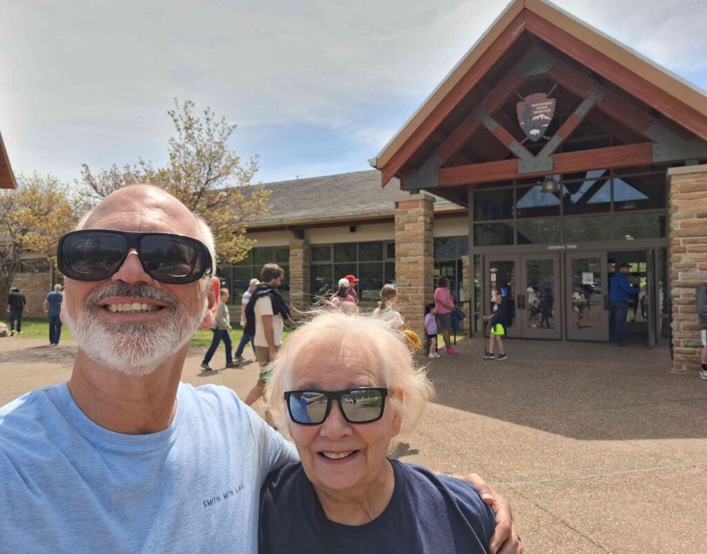 Steve had made reservations for the Historic Cave Tour, but Vicki was not happy with the prospect of climbing up 155 steps on the ‘firetower’. And Vicki decided the tour was not for her after the description the ranger gave of the tour (low ceilings, stooped over walking for 200 ft., total of 640 steps and some big elevation changes). (V: It was really the 155 steps up the fire tower – I have an issue with heights that has worsened with the years. When the ranger said if anyone couldn’t continue on the tour while underground, it would be several hours- like 6-8 – to get help and get out of the cave. Also, he held out his 10″ flashlight and said you have to squeeze through a passage this wide. If you know me, you know the top of me won’t make it. It was only later I found out that squeeze was from the waist down and it would not have been an issue at all. Still the height of 155 straight up steps made it the right call. I’ve been to Mammoth Caves twice, this was Steven’s first. I encouraged him to continue.)