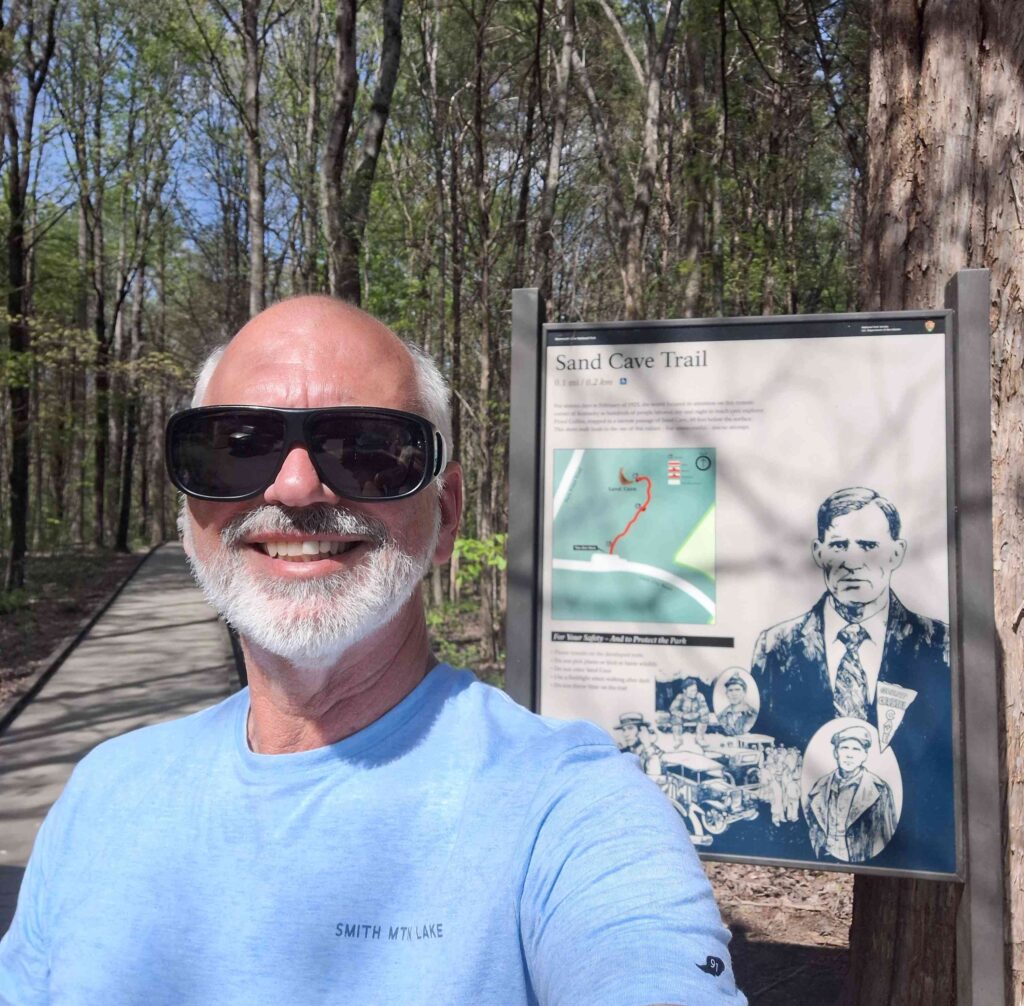 Our return trip from Detweilers took us back through Mammoth Caves National Park, and Steve took a short hike to Sandy Cave. At this cave back around 1890, an experienced spelunker was trapped. And his unsuccessful rescue also resulted in a carnival-like atmosphere around the rescuers.