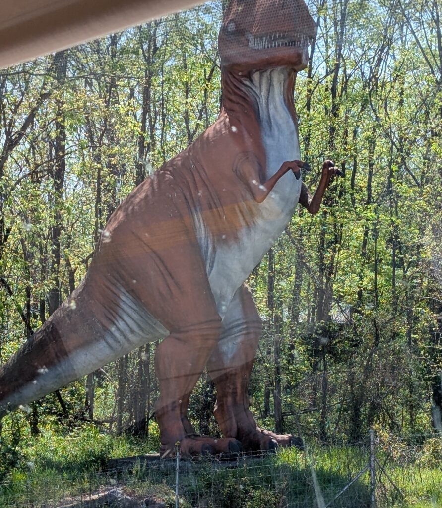We got off the freeway following the signs to Mammoth Caves National Park. And we went through a section of road dedicated to tourist traps: mini-golf, stores with all kinds of rocks, and stores with dinosaurs. This section of Kentucky really promotes its cave tourism.