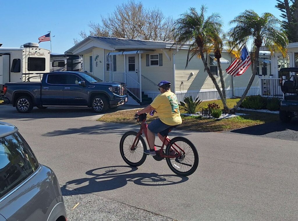 Vicki’s first bike ride was around the pond at Winter Quarters without the electric part of the bike working. Steven fixed this by cleaning the battery contacts. V: the bike weighs 60 lbs with the battery. It’s still work.