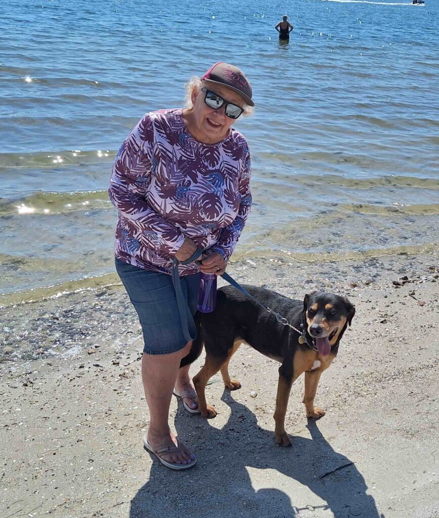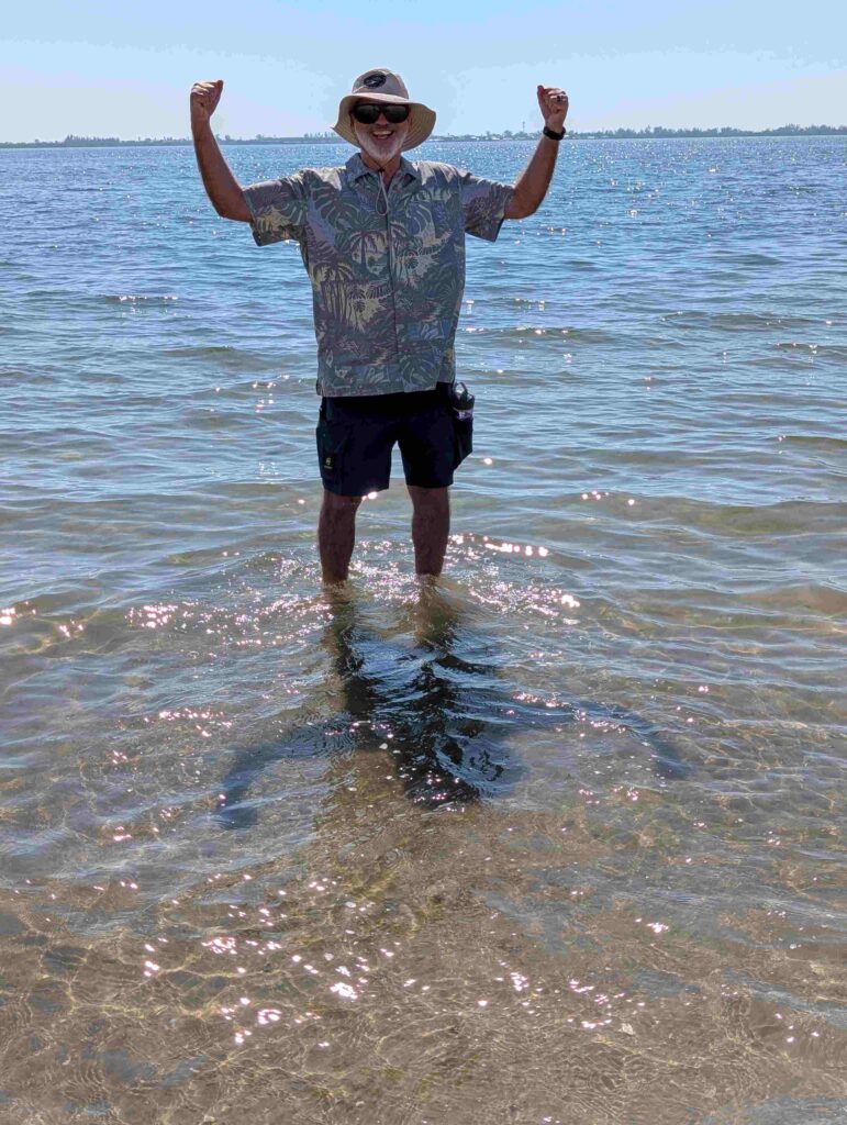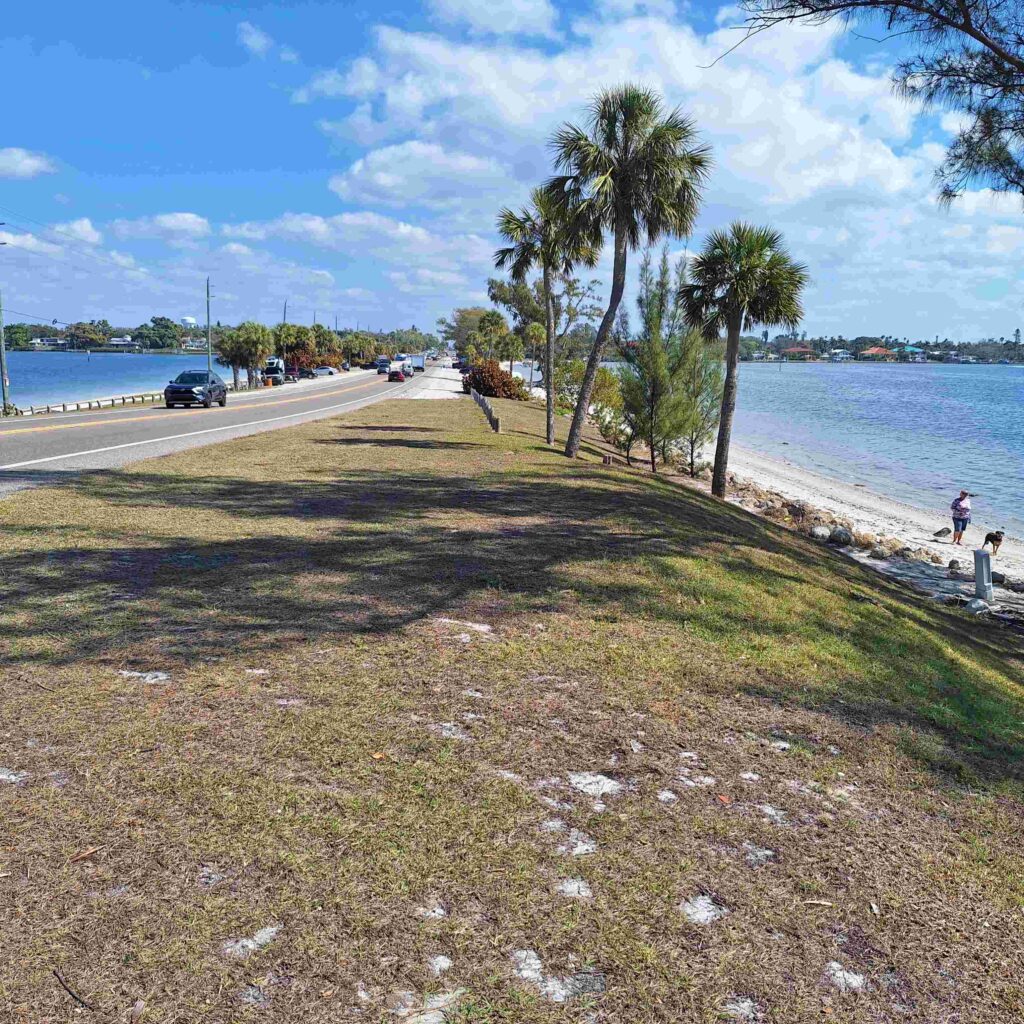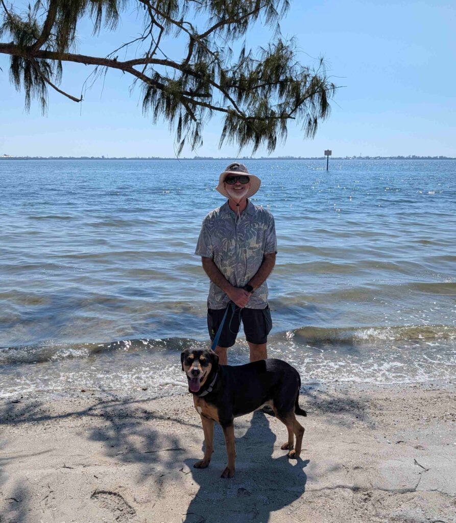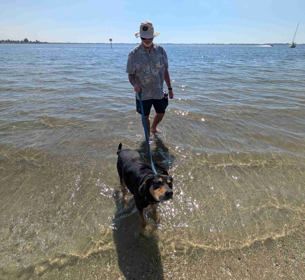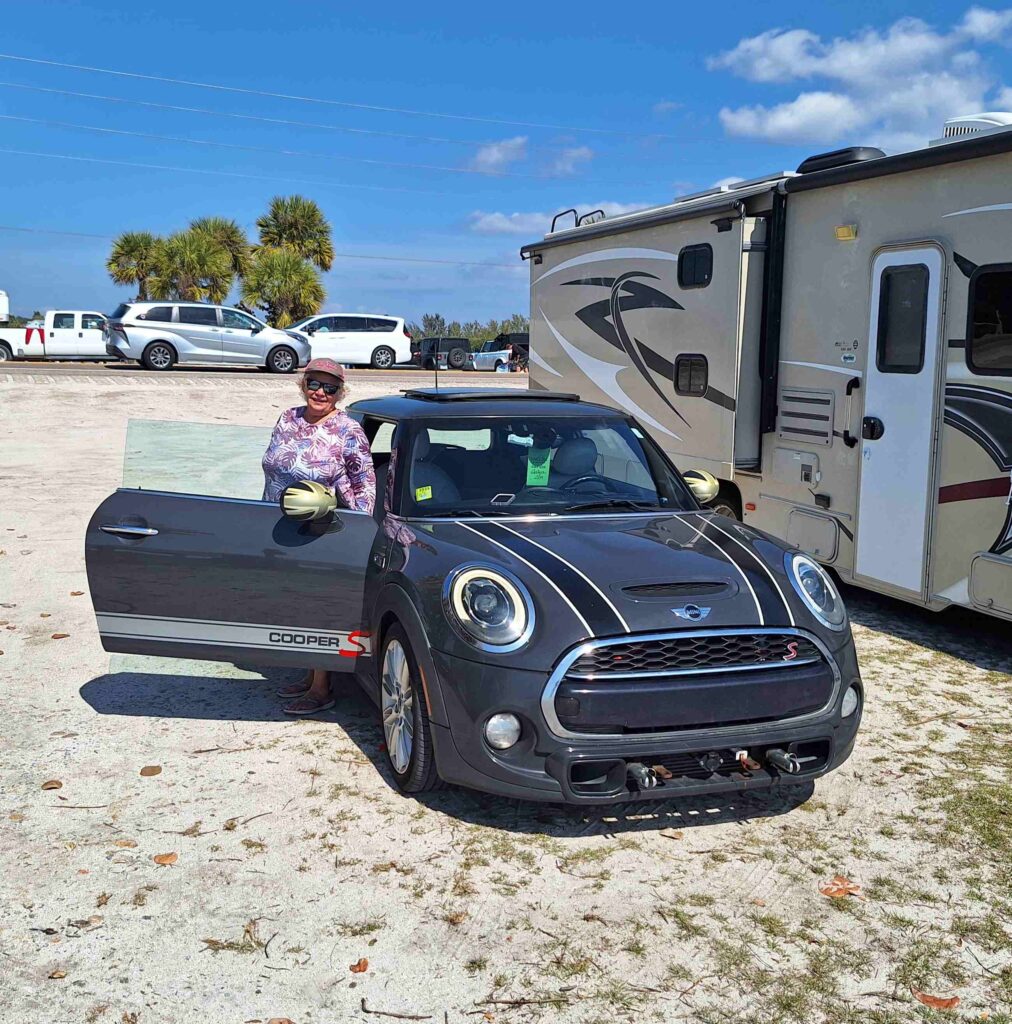 On Saturday we took Lexie to the Palma Sola Causeway Park, a public park that allows dogs on the beach. Lexie actually went into the water, which I think is a first for her. But getting to the park took a long time, the road is the same causeway to Anna Maria Island and was very crowded at noontime. V: the RV next to our Mini Cooper was not ours but people did bring RVs there for the day.