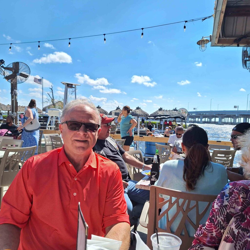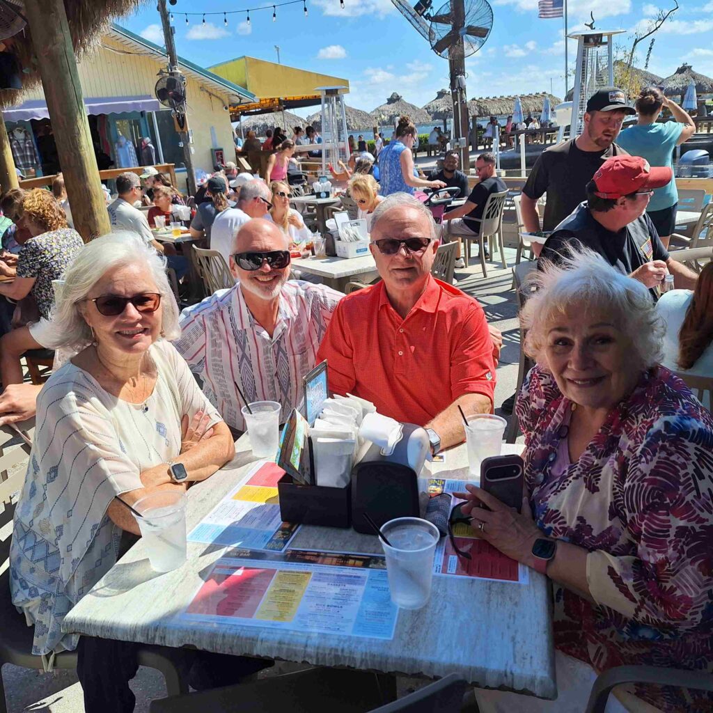Sunday morning, we went to Forward Church again and caught up with Alan and Patti Watson for a repeat performance. Afterwards we went to Woody’s River Roo Pub Grill and Tiki Bar for lunch. Woody’s had live music going on, and it made nice background filler because we found a table off to the side of the main floor. V: It was great to see Alan and Patti and do more catching up. Windy day.