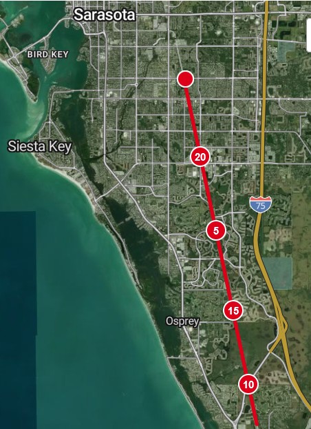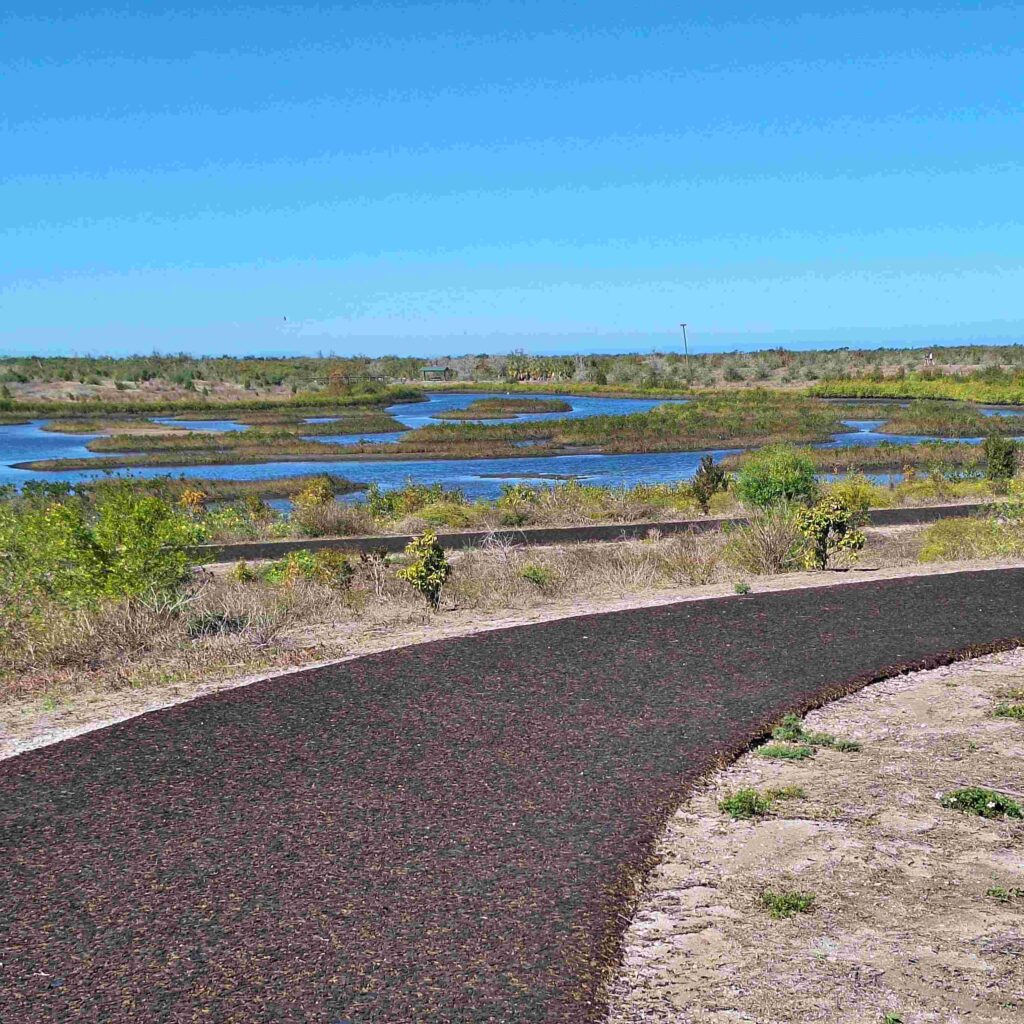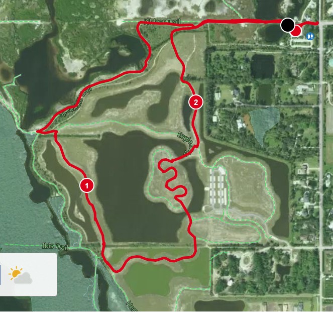 Wednesday Vicki was feeling under the weather, so Steve took a bike ride (22.5 miles) along the Legacy Trail in Sarasota. There was a headwind that slowed southward progress on the first part of the trip, but heading back was much quicker. The trail was fairly wide, and the electric bikes were the dominant mode of transportation.