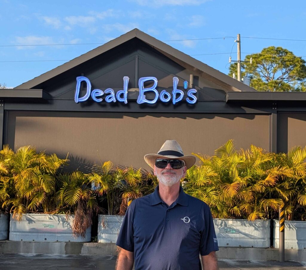 Monday evening we visited Dan and Andrea, meeting them at the new Dead Bob’s that is nearer their house. Dinner was burgers, but of course there was peel-n-eat shrimp for appetizers (and boneless chicken wings and brussel sprouts.)