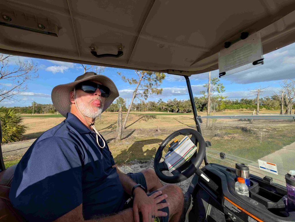 V: the funniest part of the phone adventure was Steven has a picture of the two of us as his phone wallpaper. The maintenance guy came zooming up when he saw us at the hole in a golf cart but not with clubs. He stared at me and before I could ask, he said “we found your phone.” Obviously, we didn’t have to show proof of ownership of that phone.