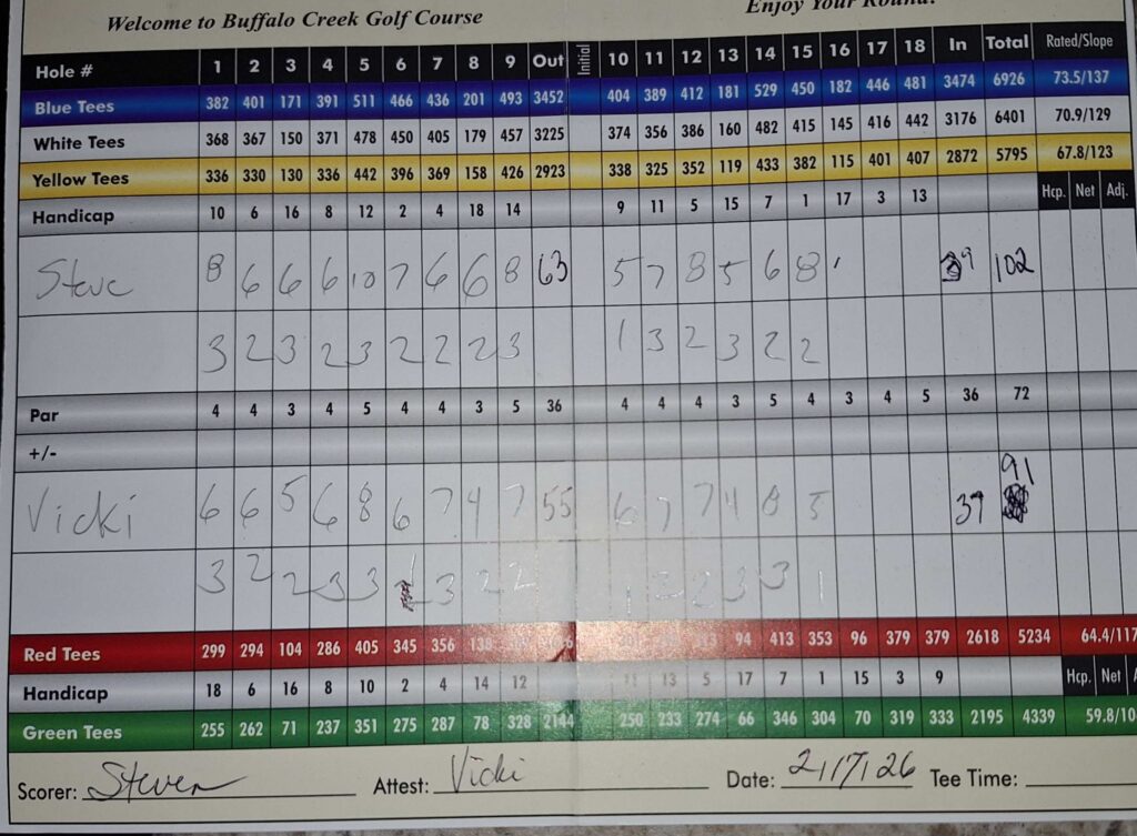 Tuesday we went golfing to Buffalo Creek, a public golf course that was not as picturesque as Greenfield Links. https://golfbuffalocreek.com/