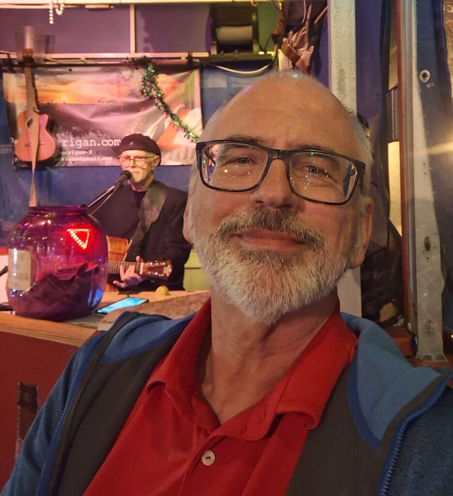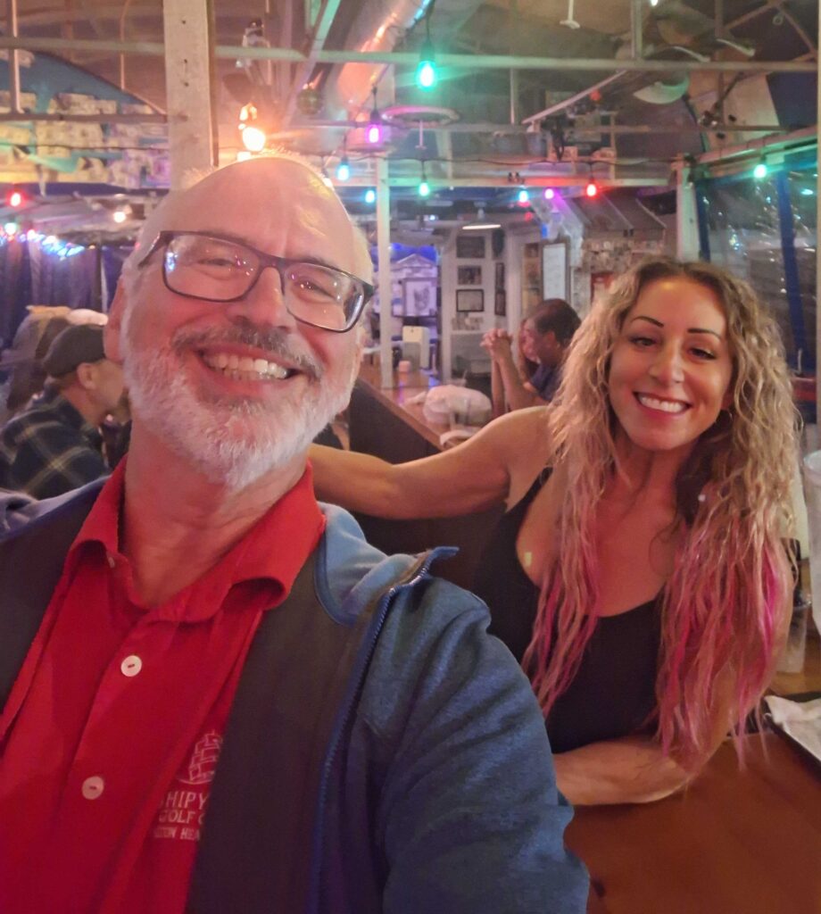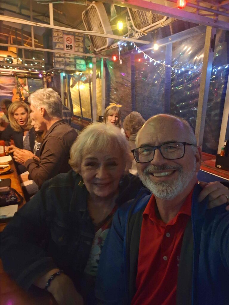 We always enjoy listening to Pete, we consider him one of the friends we need to see when we are in the area. And it appears that Pete enjoys our company as well, or at least Vicki’s company. Pete asked Vicki to sing “Shame and Scandal”, a regular occurrence when we see him.