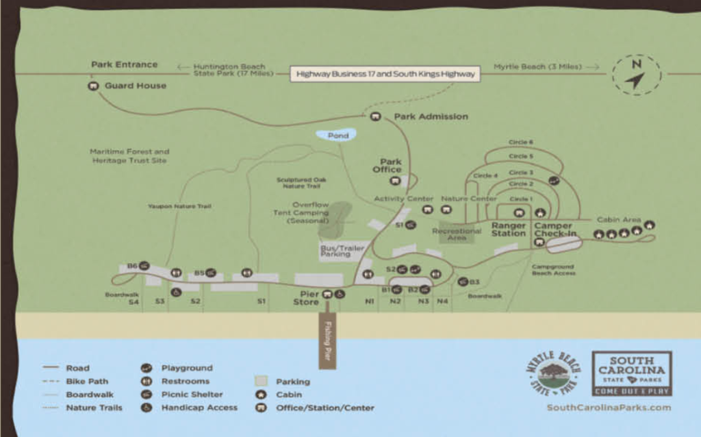 We made our way northwards along the coast of Georgia and South Carolina until we got to Myrtle Beach State Park (https://southcarolinaparks.com/myrtle-beach.)