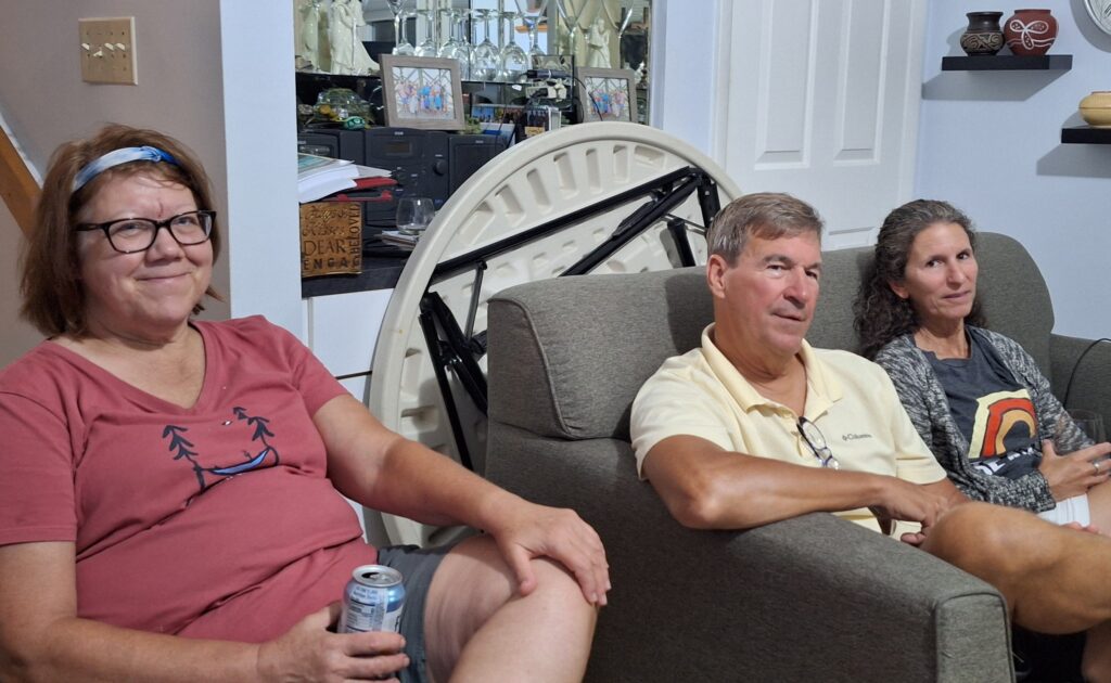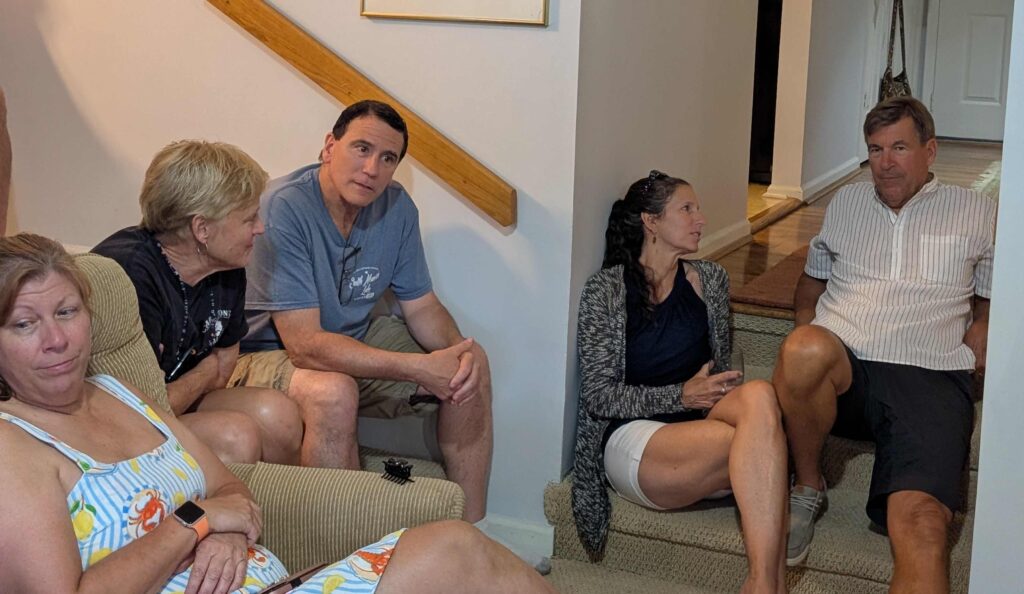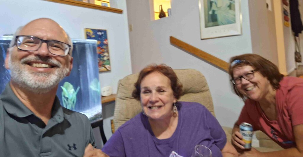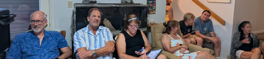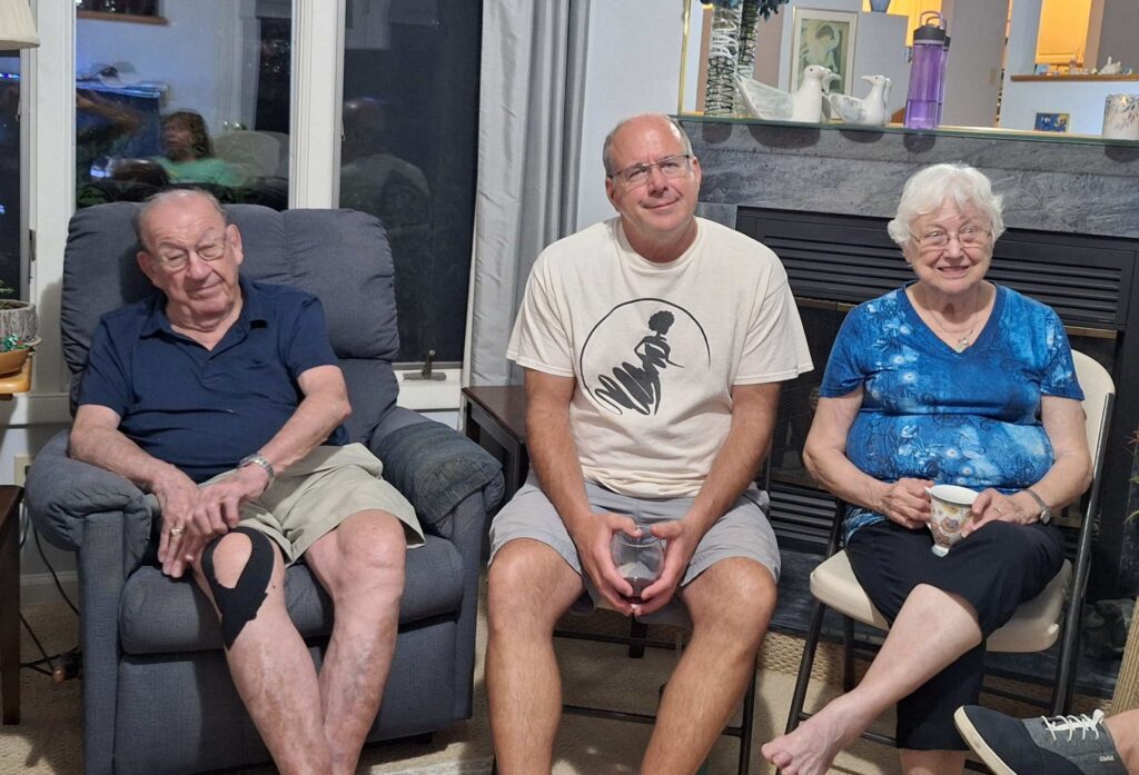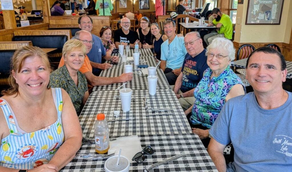 The family was scattered at night. Steven, Dennis, Vicki and Margaret stayed with Mom and Dad. Jeanne and Bob spend the night with Cynthia and her cats. Greg, Barb and Steve were in a hotel room near the airport. But we all gathered again on July 3 at Beach Bully’s to continue a long tradition of having barbecue while in Virginia Beach.