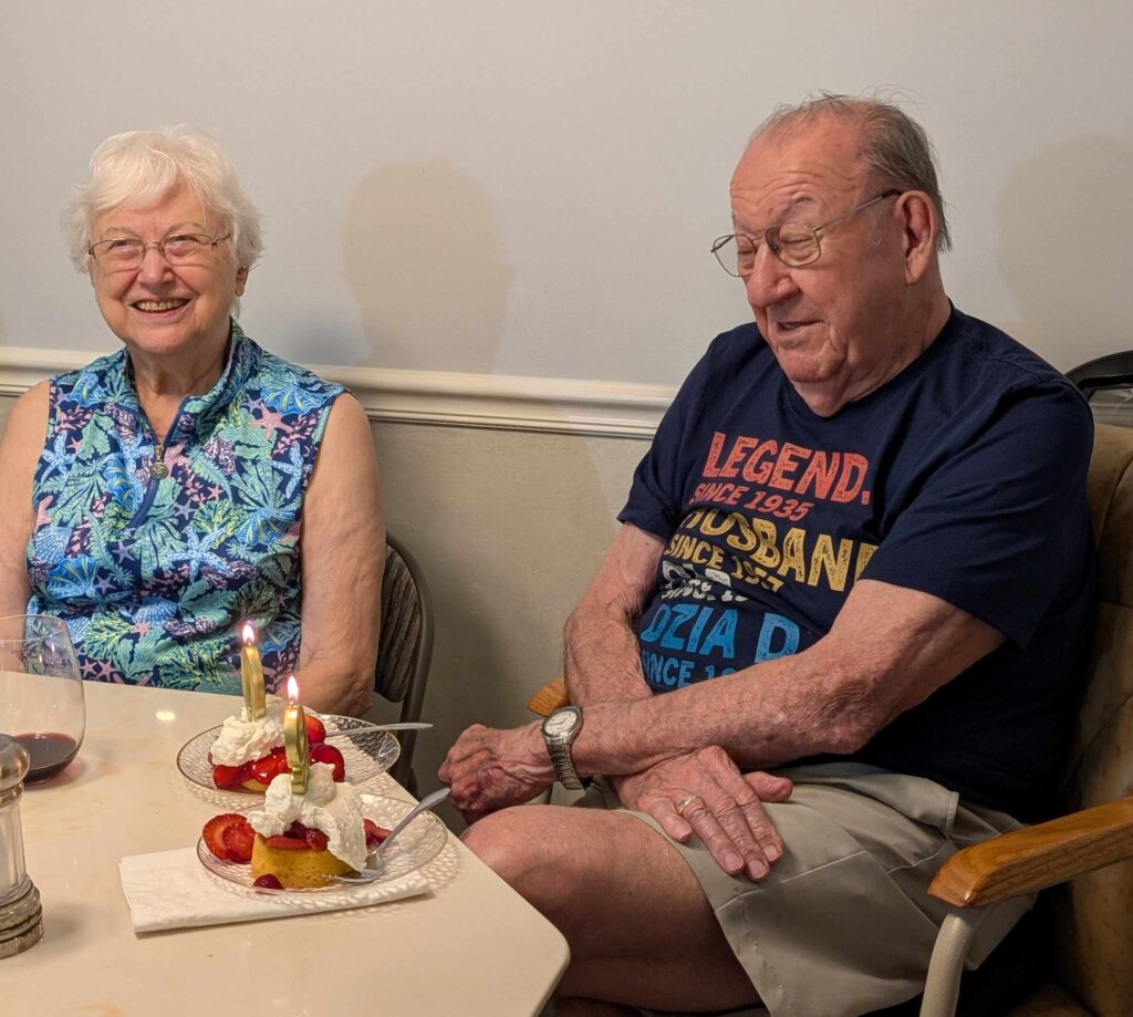 Bob, Jeanne, Dennis and Margaret prepared dinner that evening: sous vide steaks that were finished with a quick sear on the grill. They were fantastic. We sang the traditional birthday songs to Dad afterwards and all had strawberry shortcake for dessert.