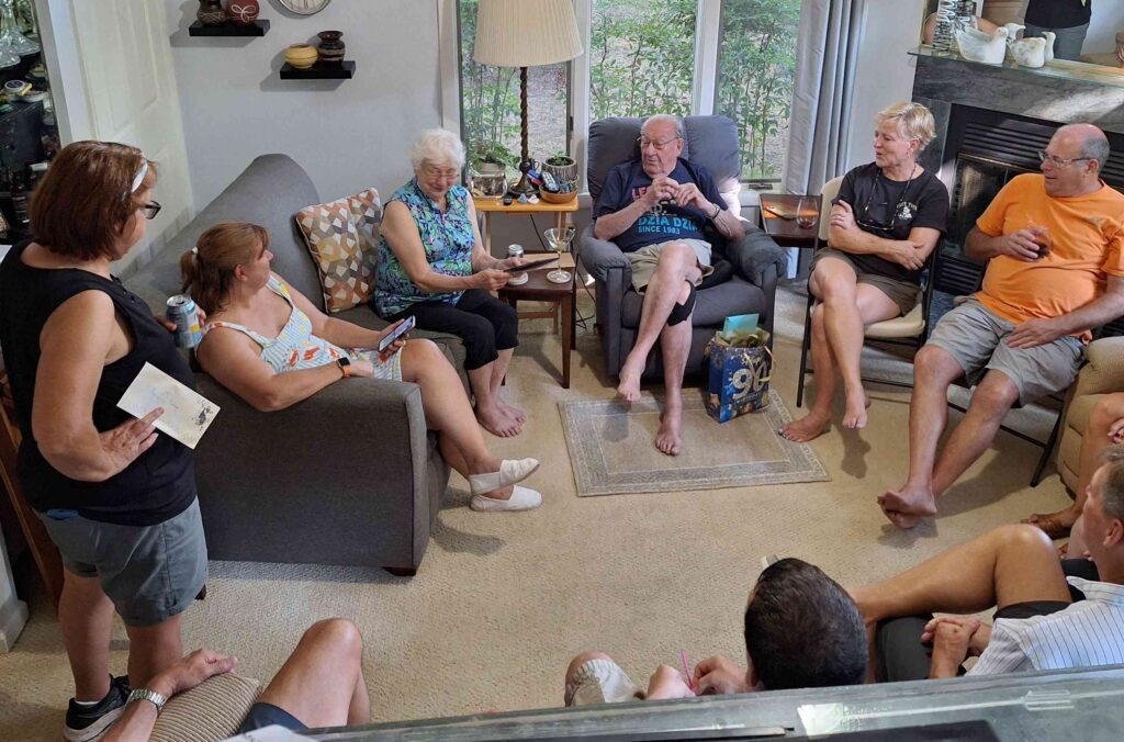 Definitely a family celebration: all of Joe’s children and their spouses were celebrating in Beach Cove Pl. We even had Steve Cibor, Nancy and Joe Siko attend.