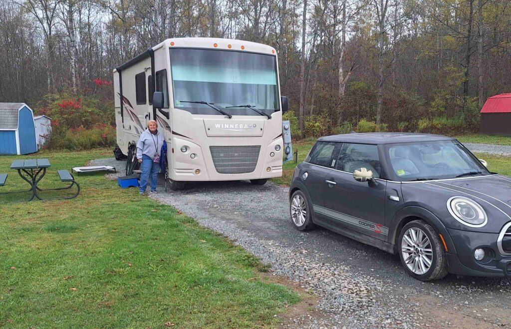 Our sixth leg placed us near Keuka Lake in Prattsburg. Our site was in the back with other short-term campers. Most of the (seasonal) sites were unoccupied, but there were several other short-term campers near us. We made friends with Don and Emily, sharing fireside chats and even a dinner at a local restaurant: JB’s Bar and Grill.