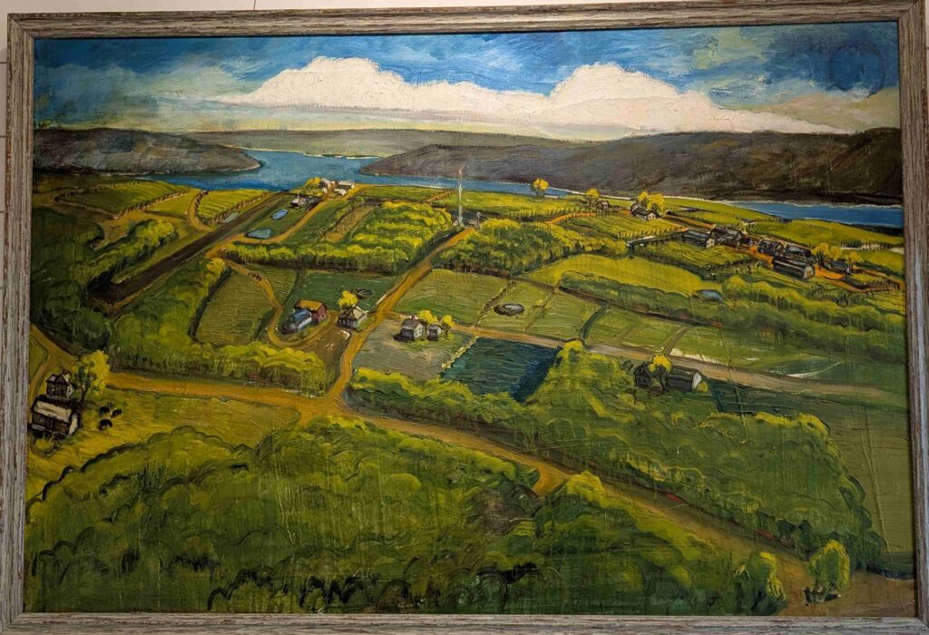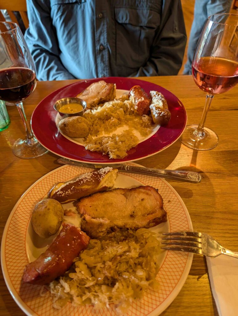 We had lunch at Bully Hill Vineyards (https://bullyhillvineyards.com/), one of the few wineries in the area that served food. We tasted their dry wines, and liked several of the whites enough to buy a few bottles (Elise Chardonnay and Cayuga White). Most of the red wines were too bitter for our tastes, but we did get their Fusion. V.-it probably didn’t help that we did the tasting after eating an Oktoberfest meal of pork loin, kielbasa, potatoes, sauerkraut and a big German pretzel. We also enjoyed the artwork in the store (as we bought things).