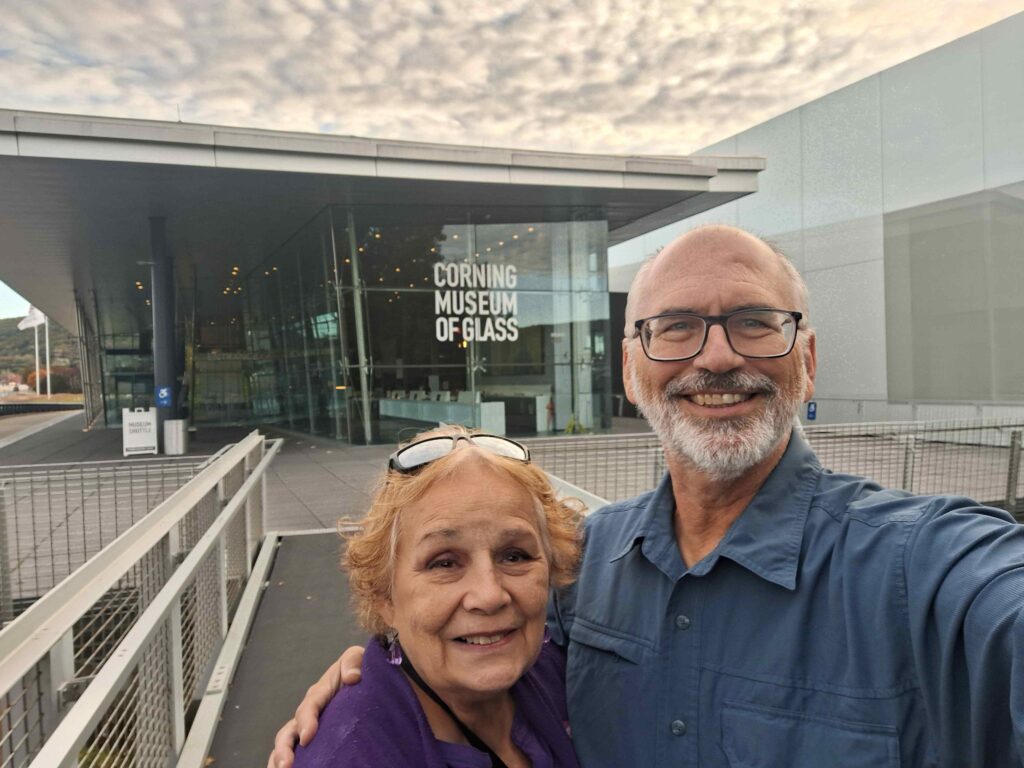 We explored more than wineries and restaurants. We visited the Corning Glass Museum (another NARM member, like the Rock Hall), spending most of our time between the contemporary art and the gift store. V.– don’t forget the glass blowing demonstration – very cool – and especially this Meteorite of glass pieces depicting the stages of civilizations and man. A few pieces really grabbed me. Really didn’t get to see the older glass exhibits and sadly for me – gladly for Steven, we didn’t even see the retail store with all the Corningware dish patterns and casserole dishes for sale.