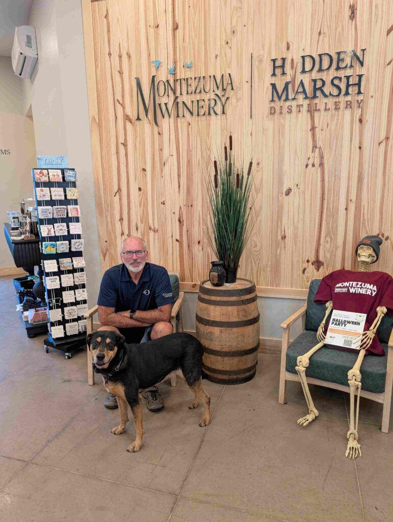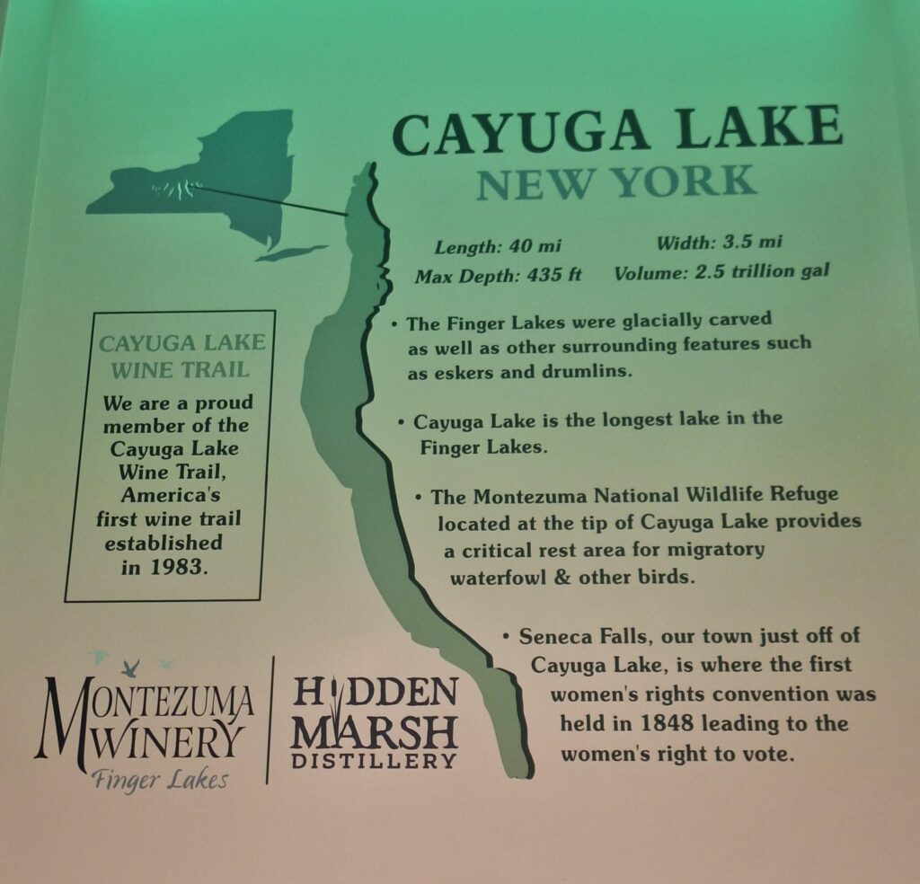 This site was well within wine country. The state park is along the Cayuga Lake Wine trail, a self-promoted trail that included ten wineries along the western shore of Cayuga Lake. We visited the first winery along the trail: Montezuma’s winery. Lexi joined us (very dog friendly) and we had a glass of wine along with some flatbread and spinach/artichoke dip. The wine was good but pricier than we wanted. There was ‘live’ entertainment with a singer blasting music inside the winery, even so we had a very enjoyable evening.