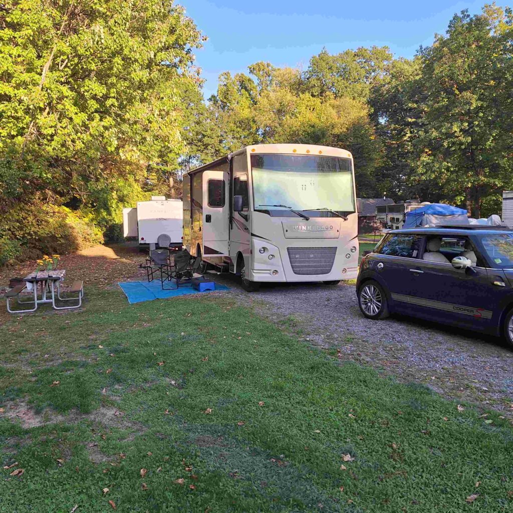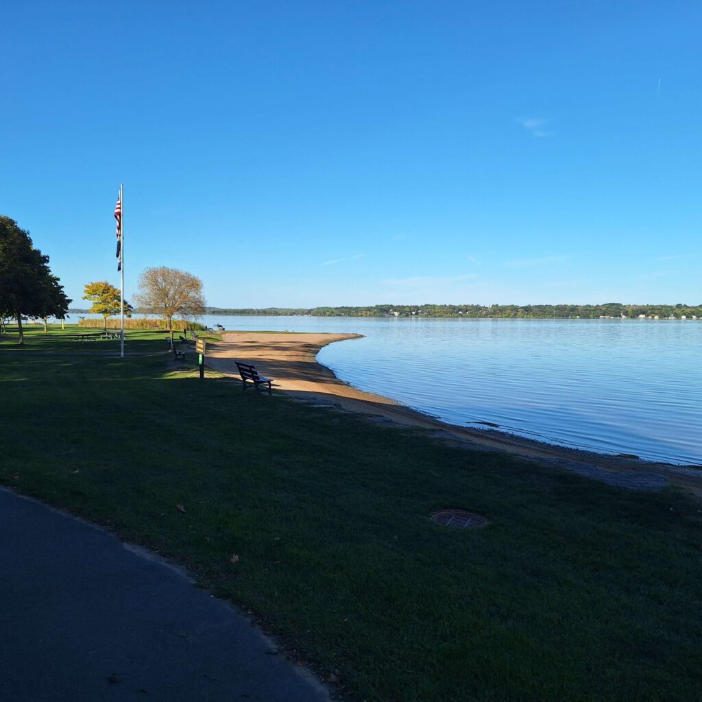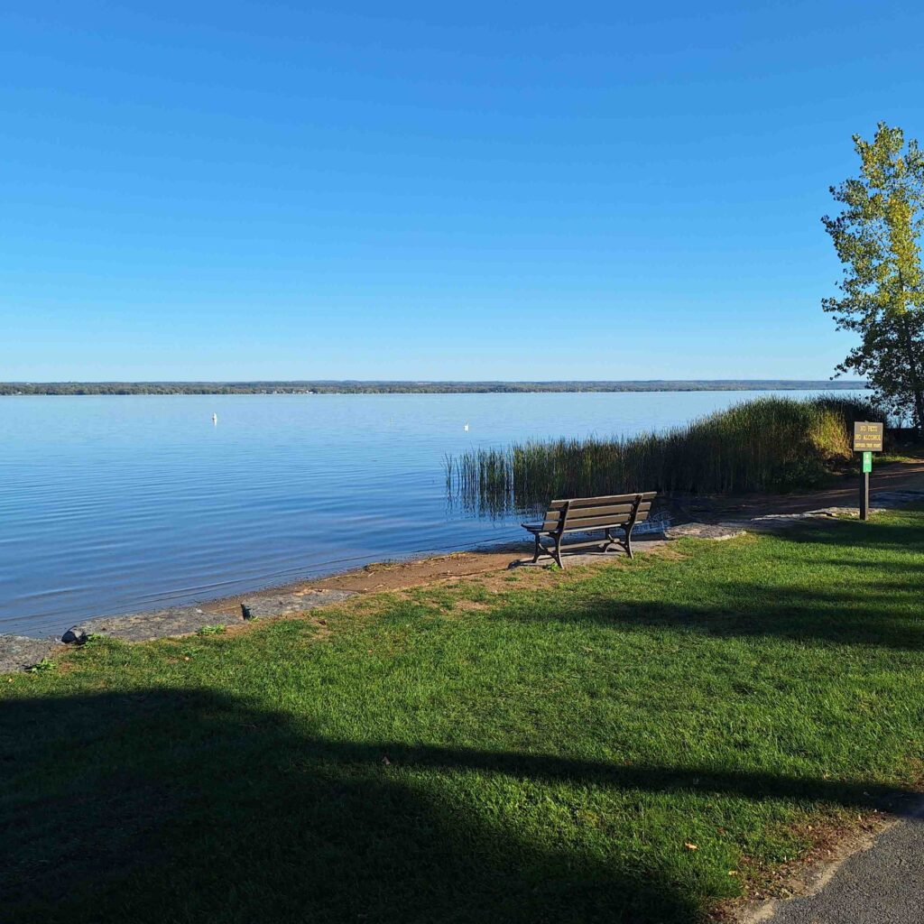 Our next leg of the 2025 Fall adventure was in Cayuga State Park. Which was next to Cayuga Lake! Our campsite was very close to the lake and we stayed for three nights. The campground had many sites, most without electricity. Our site had electricity and we shared water with another campsite. The rule for water sharing was to only hook up our camper to the water for 15 minutes so we could fill our on board tanks. Which we did. Steve is finally getting the hang of how to configure the RV to use on board water. But Vicki still has to tell him when the water is not running properly (no water pressure?)