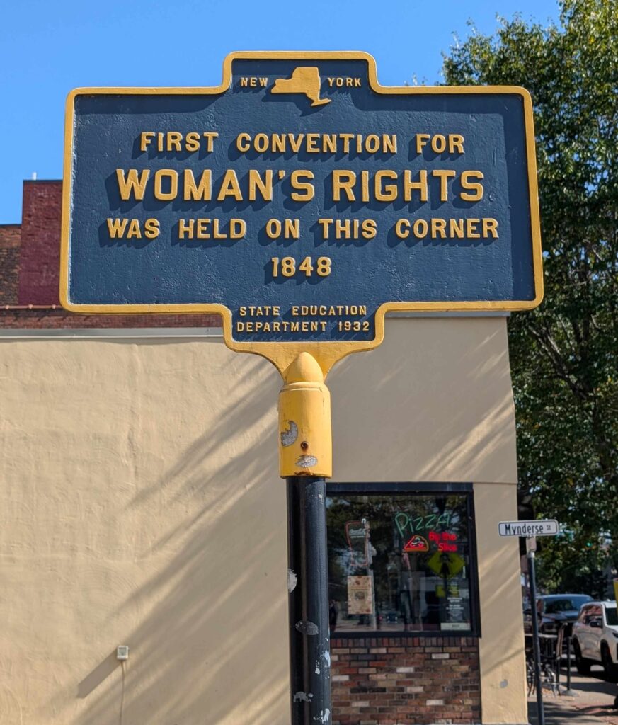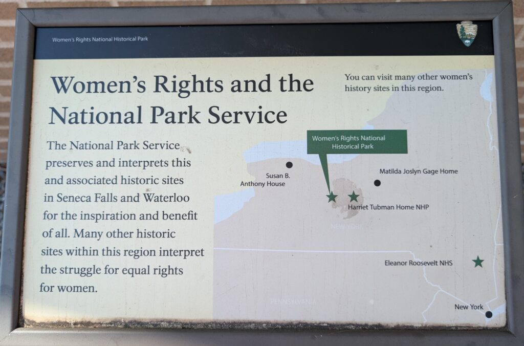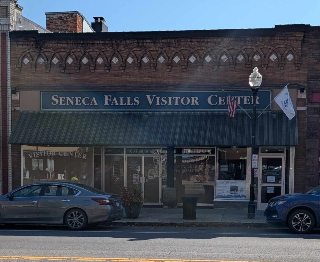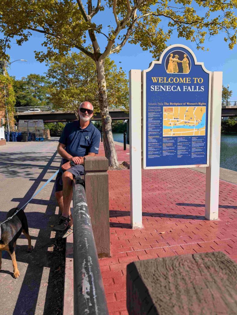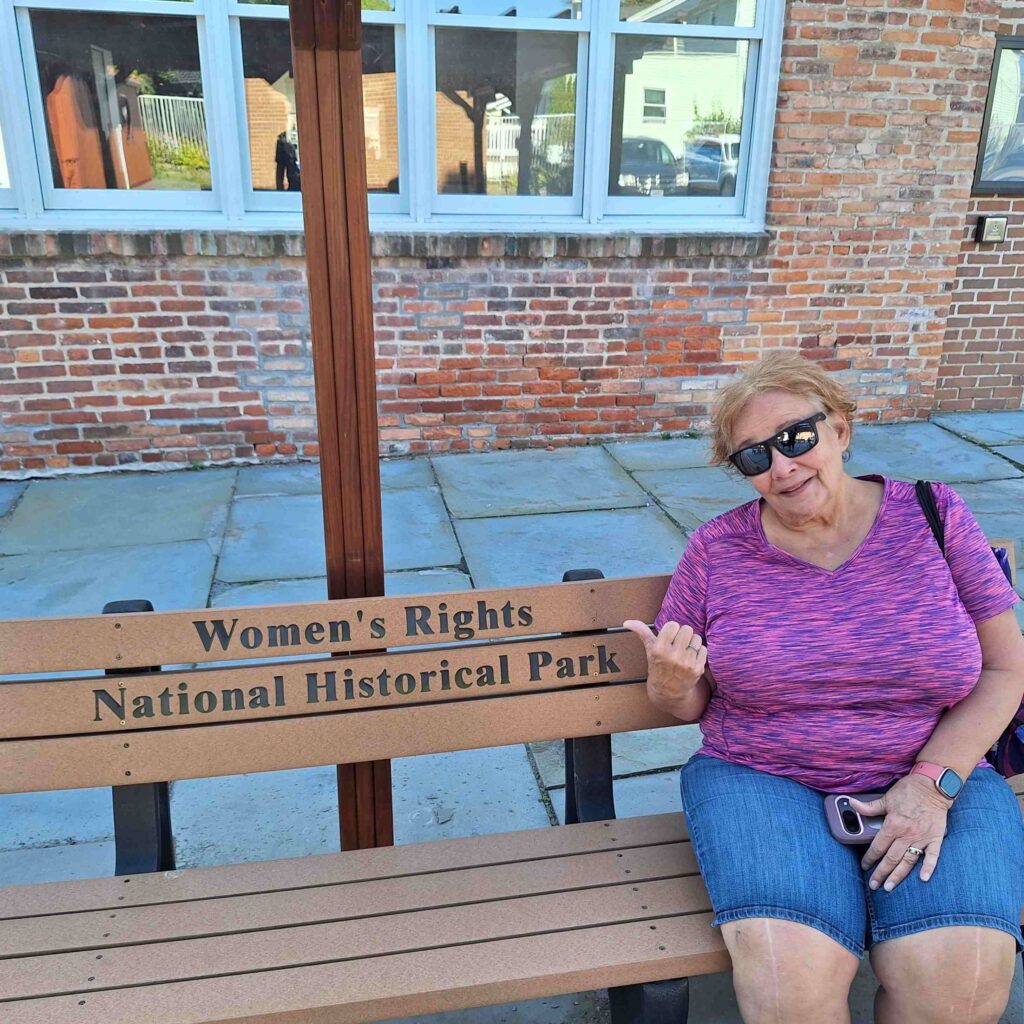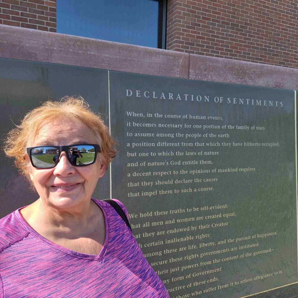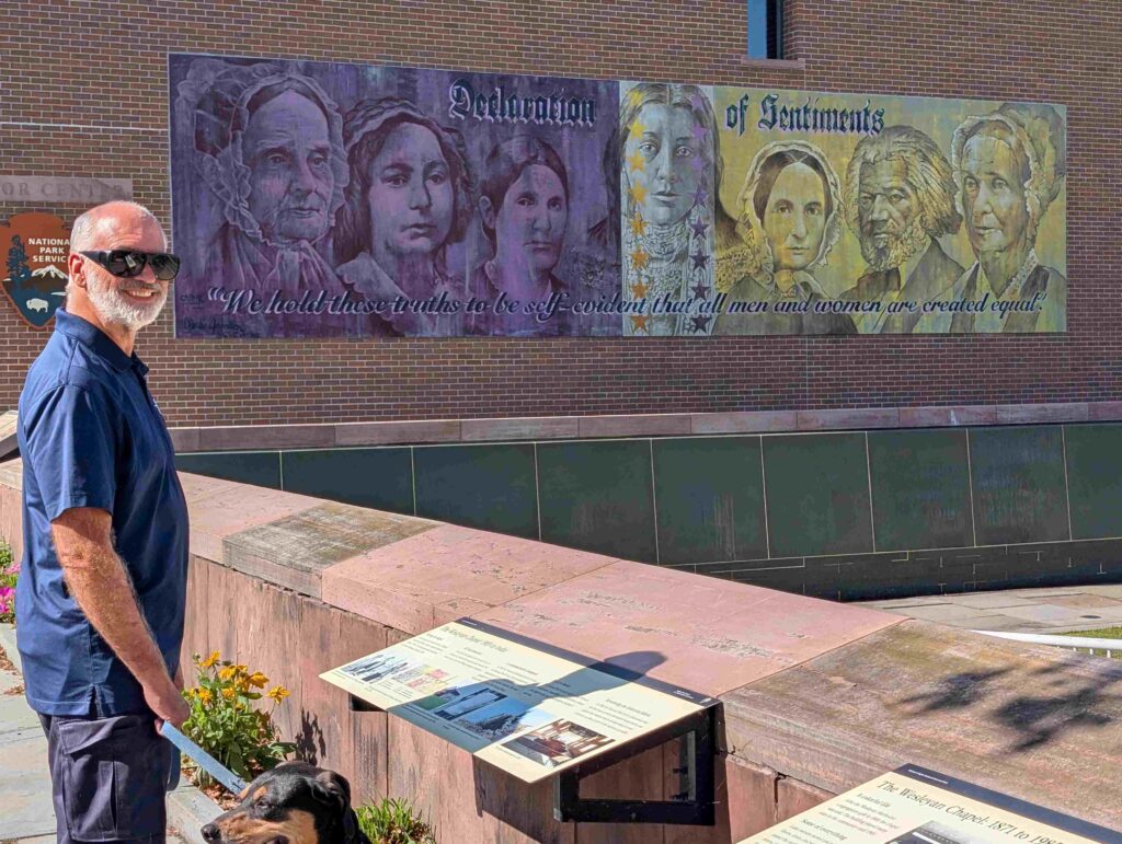 In the afternoon we went into Seneca Falls (Steve, Lexi, Vicki) to visit the National Women’s Rights National Park. But the visitor center was closed due to the government shutdown (so no cancellation mark for the passport book). Outside the visitor center was a water wall that had the Declaration of Sentiment printed on it, a very thought provoking and meditative monument.