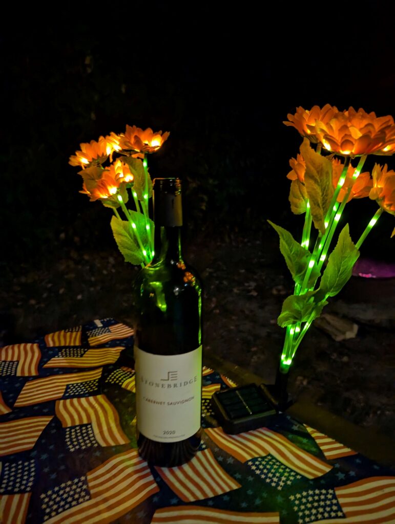 Since the winery didn’t offer any food, we stopped for ice cream on the way back to our campsite. Lexie got another pup cup. Maybe that’s why she likes traveling in the Mini Cooper: an ice cream may appear. V.- she has gotten good at relaxing while we enjoy the wine, snacks and other “winers.”