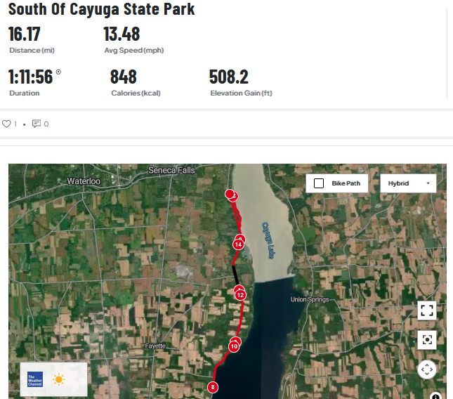 Steve didn’t see any close by hiking or biking trails, so he went out on the road next to the lake and biked south for eight miles (and back for another eight.) There wasn’t much traffic on the road, so it was a pleasant ride.