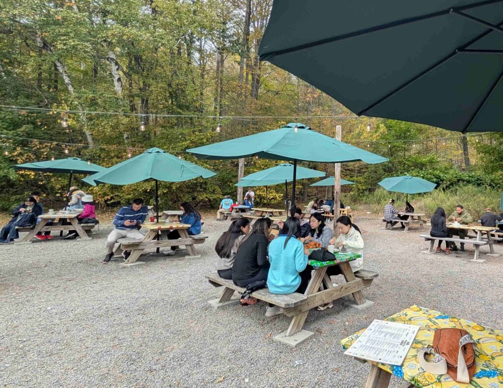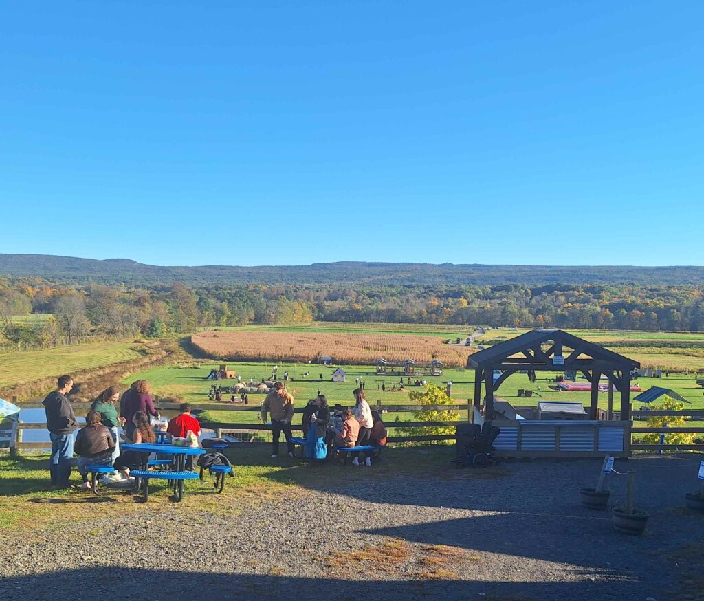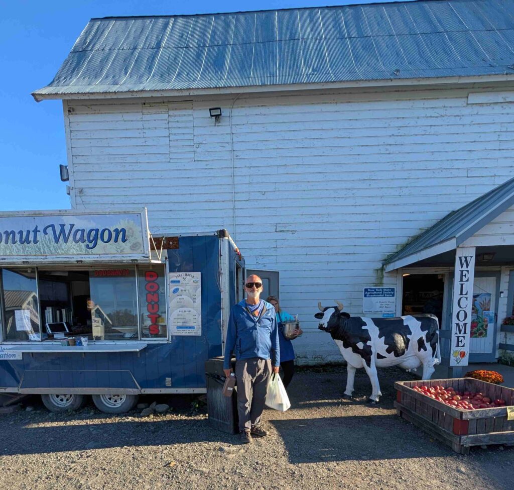 Near the campground was a tourist orchard/farm: Kelder Farms. We went into the store and got some cider, apple cider donuts, dutch apple pie, pancake mix, syrup, bourbon caramel dipping sauce, and jam (Route 209 Traffic Jam with peach, strawberry, cherry, raspberry, and cranberry.) We didn’t pay to go pick pumpkins or take part in the other family activities.