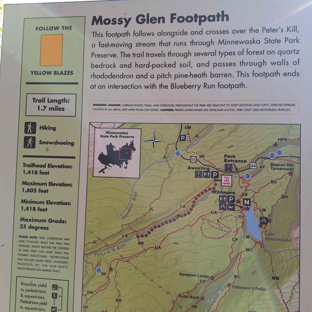 We also walked along the narrow Mossy Glen trail. The trail was so narrow we had to walk single file, and Lexie did not like walking second.
