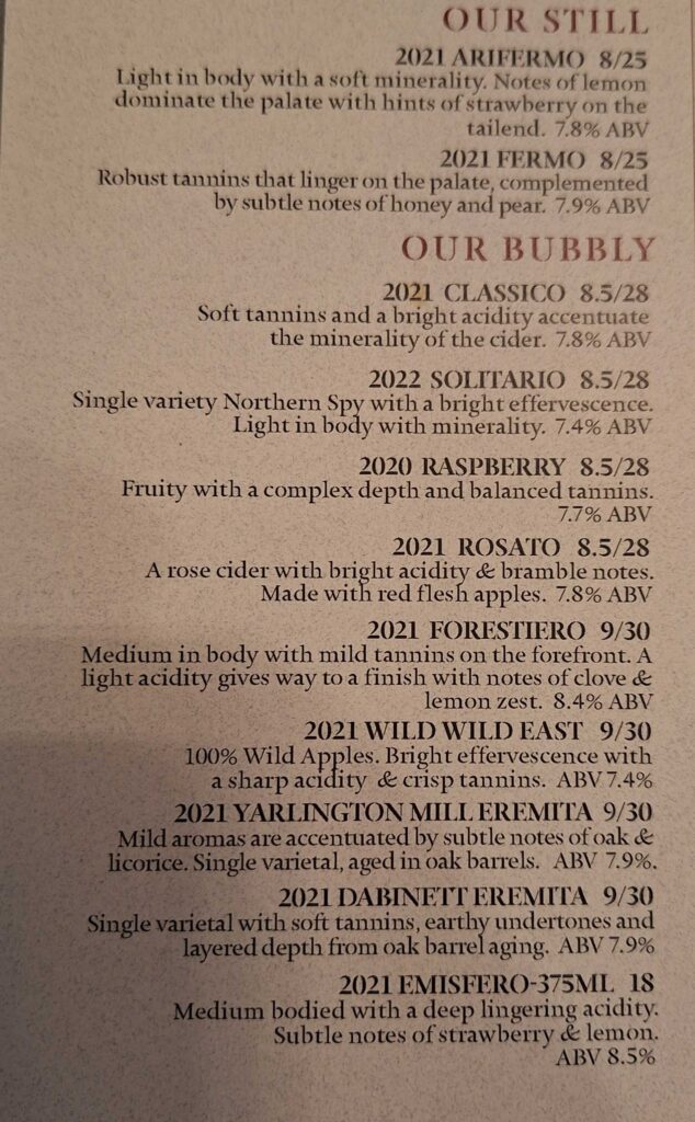 We went to the Westwind Orchard (https://www.westwindorchard.com/) on Friday night to try their cider and have some food. The ciders had complex flavors with descriptions that were similar to wines, but none that we tried were appealing to us. And we split a bowl of pasta and olives for dinner. OK, we split the bowl of pasta and Vicki had the small bowl of olives to herself. We were surprised to find that the cidery had salsa dancing that evening. So we stayed and danced for awhile. And made friends.