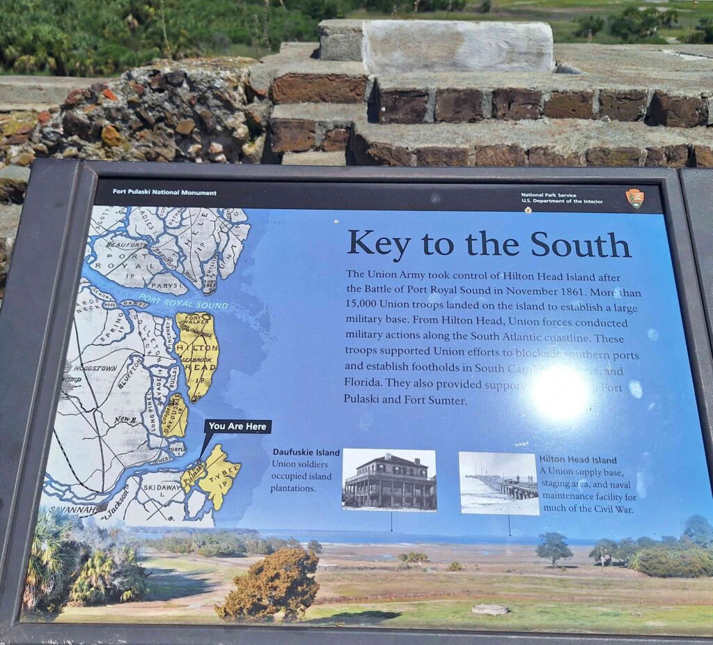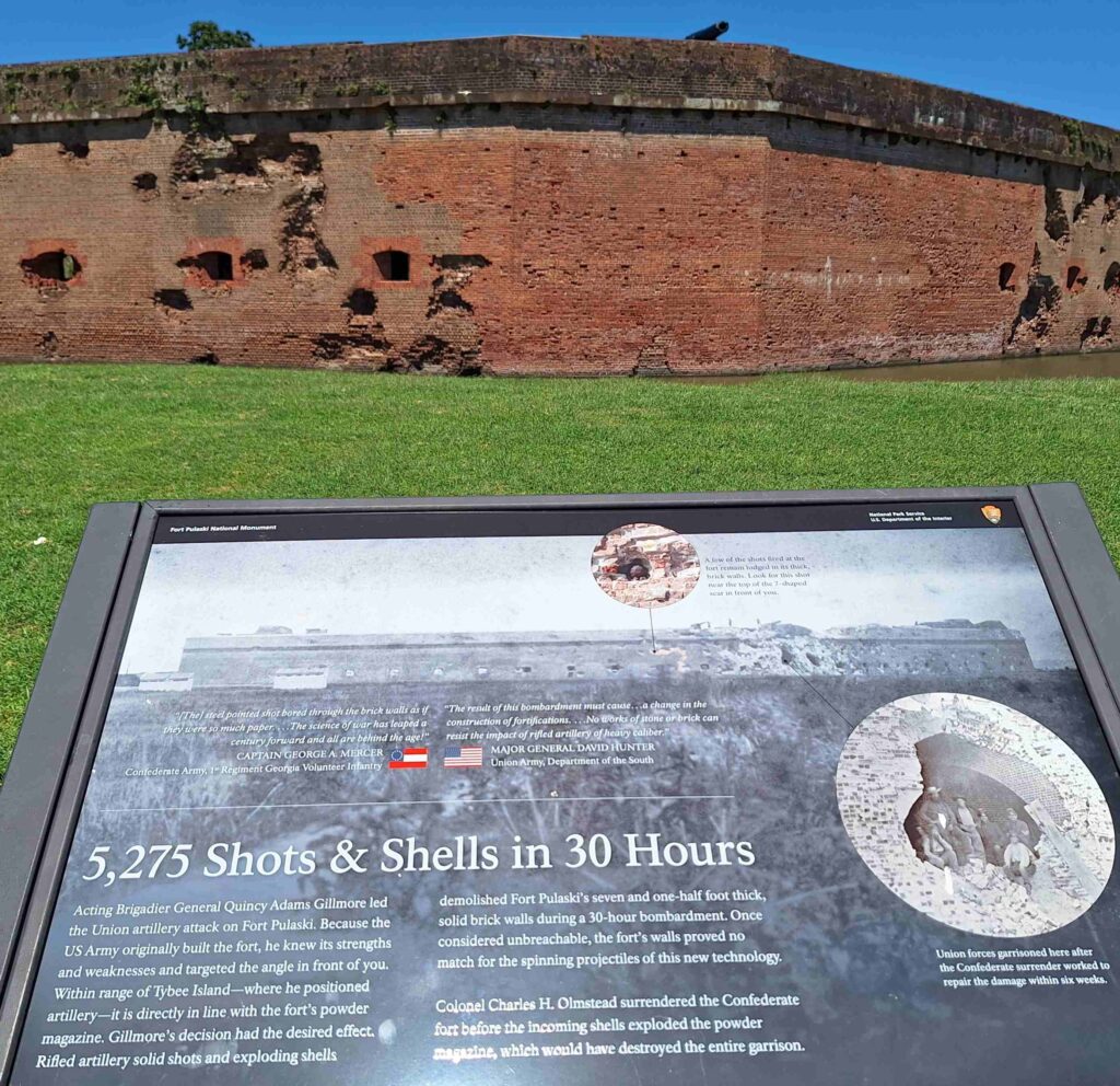 While the Confederacy held the fort, the Union captured nearby Tybee Island and set up batteries of mortar and cannon to bombard Fort Pulaski. This bombardment included the use of rifled cannon shells, a new technology. And the rifled cannon shells breached the fort’s walls and threatened to blow up the fort’s munitions. This possibility led to the surrender of the fort to the Union army.