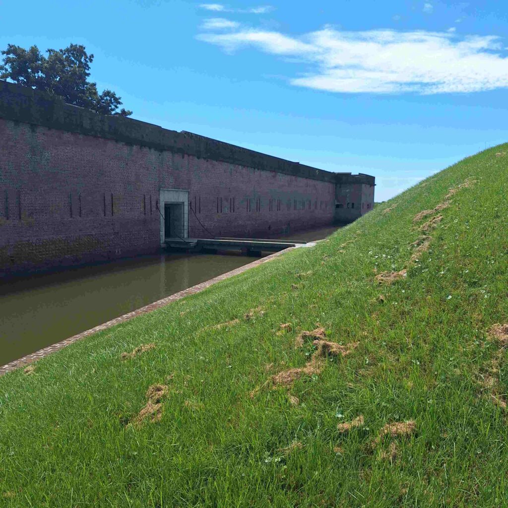 Fort Pulaski was built on Cockspur Island, and a young Robert E Lee oversaw the building. This started first with lacing the island with dikes and canals so the island stayed above water. And the fort itself was built upon wooden pillars driven into the earth.
